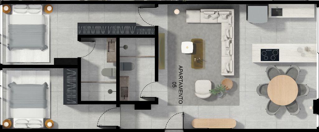 Apartamento com 02 quartos sendo 01 suíte, WC social, varanda, sala estar/jantar, cozinha, área de serviço, 01 vaga de garagem. Prédio com 01 torre e 23 unidades, com academia, elevador, salão de festa, piscina, espaço pet, hall social, gás individual, interfone, espaço gourmet, grupo gerador - CRECI: 1367-J - R-8-3-647.