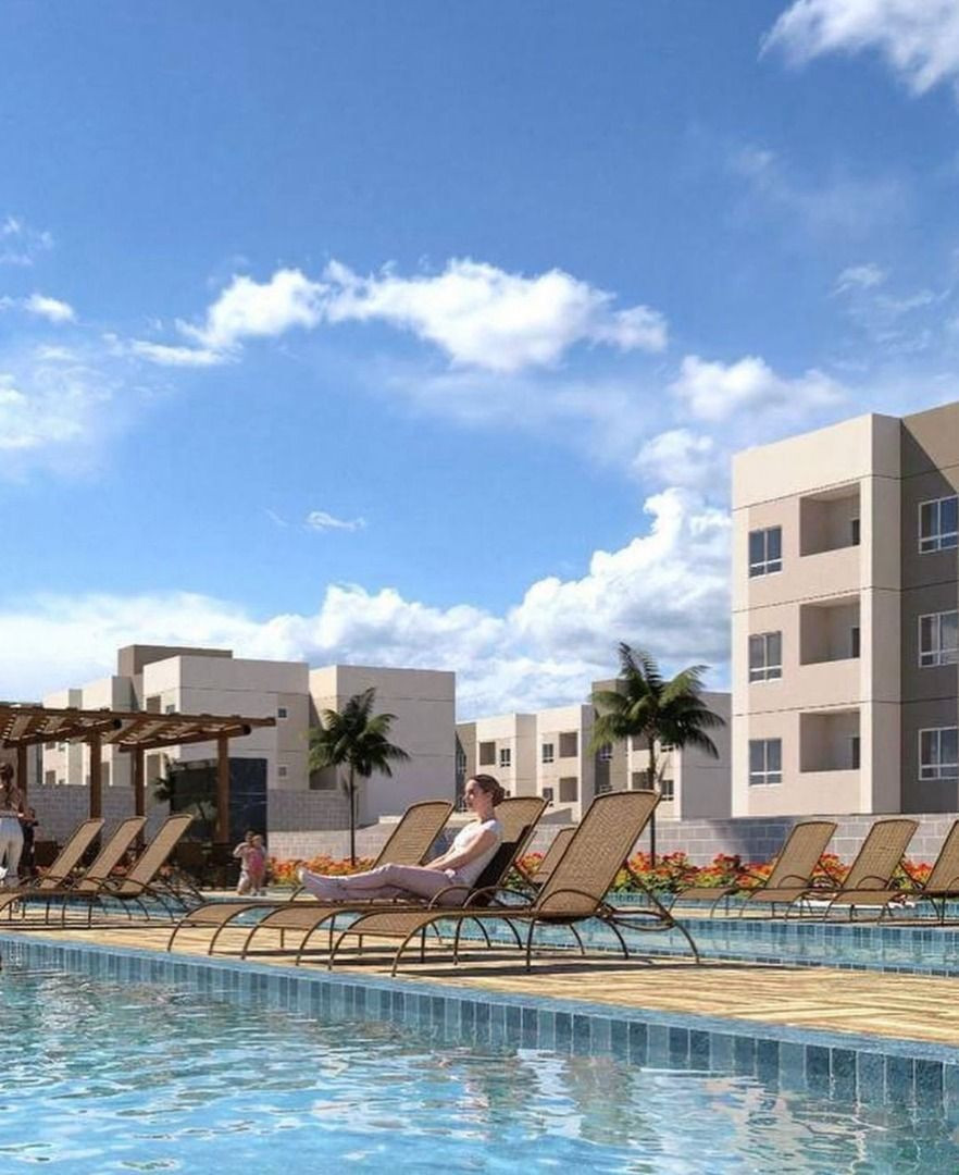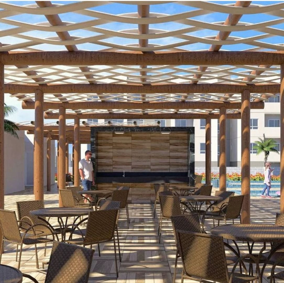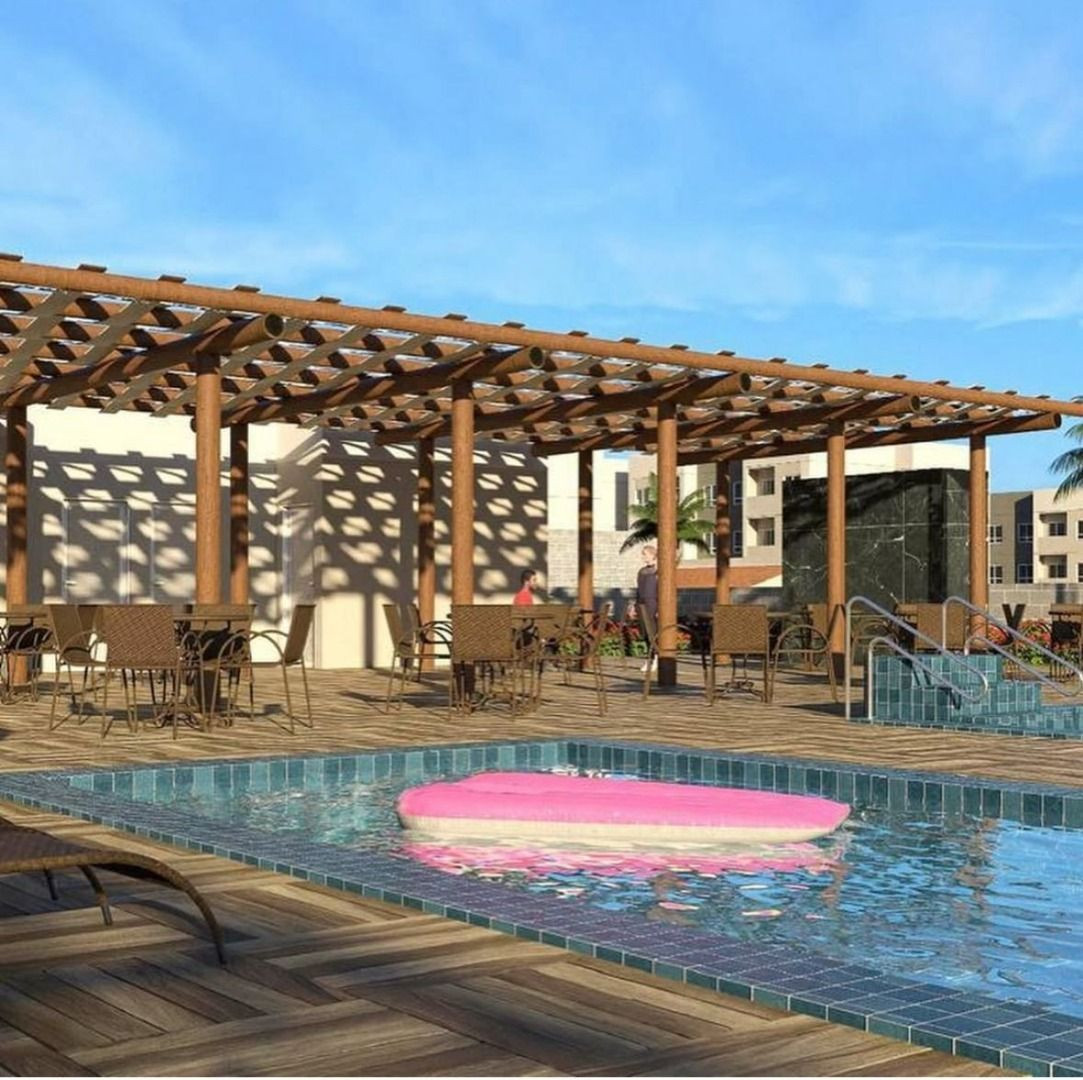 Apartamento com 02 quartos sendo 01 suíte, sala estar/jantar, WC social, varanda, cozinha, área de serviço e 01 vaga de garagem.