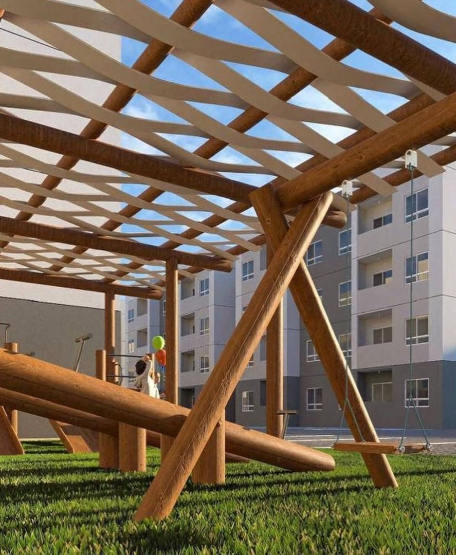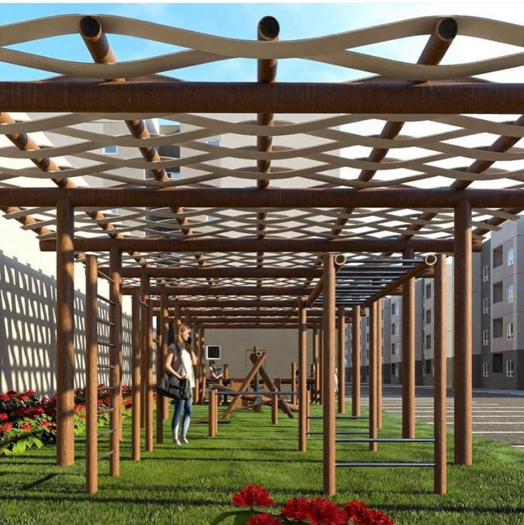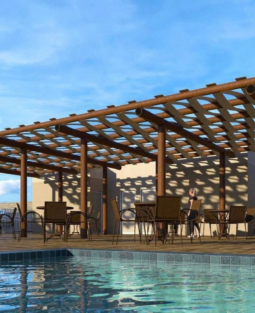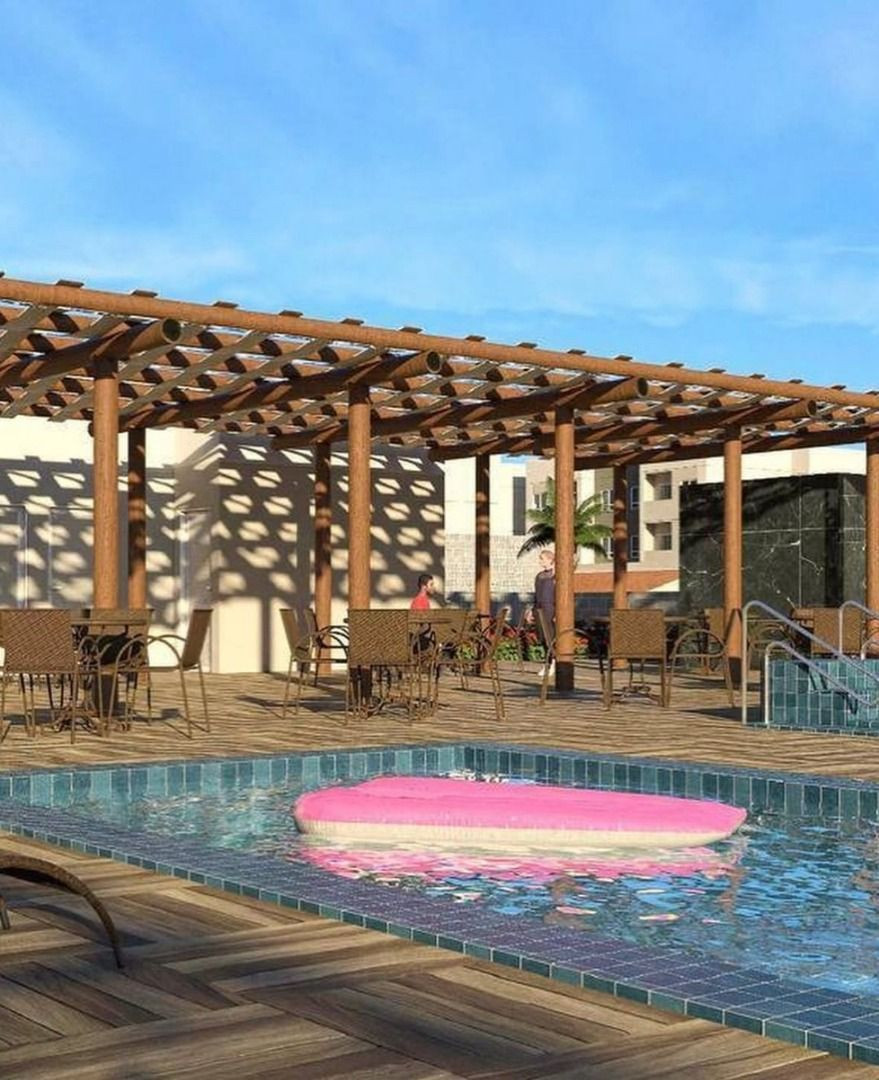 Apartamento com 02 quartos sendo 01 suíte, sala estar/jantar, WC social, varanda, cozinha, área de serviço e 01 vaga de garagem.